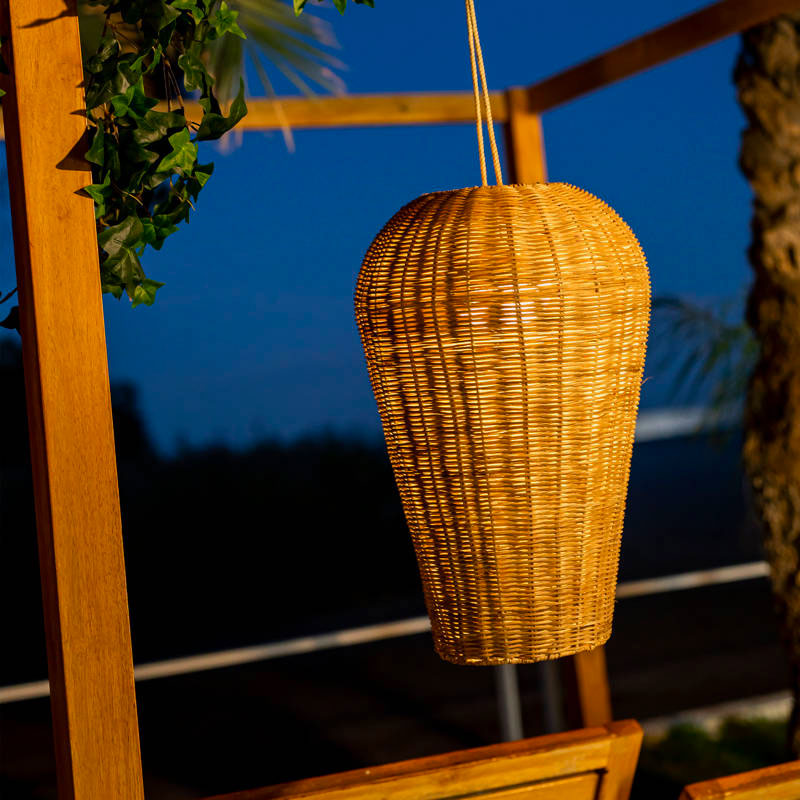 Está lámpara es el complemento perfecto para iluminar cualquier espacio de tu hogar o jardín aportándole un toque natural.