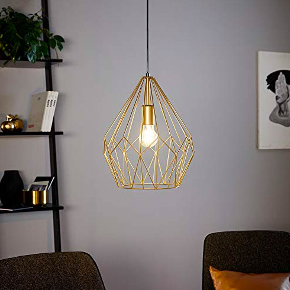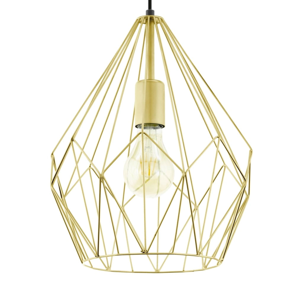 Lámpara colgante Carlton acabada en color oro de la marca Eglo. La lámpara colgante Carlton con su forma geométrica se ha posicionado como uno de nuestros top ventas. Con su diseño desenfadado y el color cobre que aporta un toque de distinción, es la opción perfecta para iluminar nuestros hogares. No dispone de interruptor.